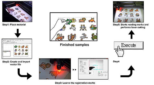 | The traditional Contour Cutting Solution brings much inconvenience and reduces production efficiency; material setup is required for positioning and the creation of a jig for positioning may also be needed to carefully and precisely place materials. Through the CCD module, the GCC LaserPro’s SmartVISION™ solution enhances productivity as it is able to learn, memorize and locate the printed graphic that needs to be contour cut and will automatically make adjustments to ensure the material is cut correctly. | ||