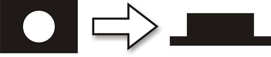 Black & White method creates dots with sharp edges. | We will use the built-in 3D Mode of the LaserPro driver to create Braille characters. Utilize in combination with CorelDraw and apply with its grayscale function, this will give a smoother engraved finish around the edges, offering softer touch sensations of the elevated dots. Now please join the LaserPro Application Lab to create a better and smoother Braille system. |