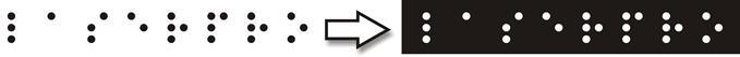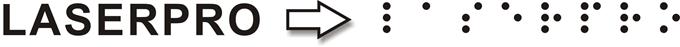 3D Mode its grayscale function creates more rounded dots. | Steps: Step 1. First download the Braille fonts and install to PC, search for available websites to download fonts via Google (URLs not provided here with respect to Copyright) Step 2. Select the Braille font and key-in letters that you wish to engrave. For example, if you key-in LASERPRO: | Step 3. In order to create raised dots, we will switch the black dots to white dots.  | Step 4. Then apply the grayscale function to the round dot to generate a 3D effect. Step 5. Select 3D mode in the Drivers page to adjust settings. Sample: Parameters: Tips: