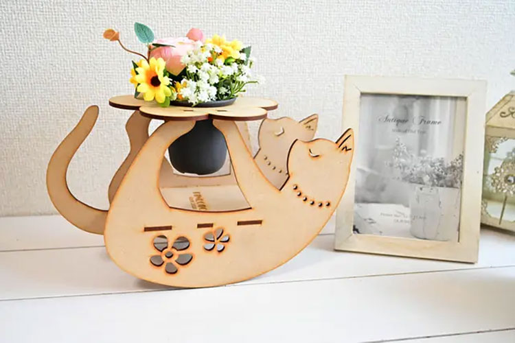 在導入 Spirit GLS 後,我們開發了以 MDF 製成的療癒系人造花架「Yurarin」。繼營火爐之後,再次在群眾募資中達成目標,並獲得極高評價,成為我們首款以非金屬材質製作的自有產品。