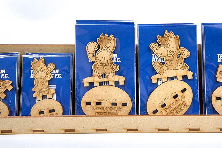雖然品牌銷售額相較公司整體營收仍屬小規模,但我們成功開拓了全新的業務領域。 例如,我們授權使用地方吉祥物(如立川市吉祥物與職業運動隊吉祥物)開發原創周邊,並為機器人競賽或學校運動會製作紀念品與獎牌。